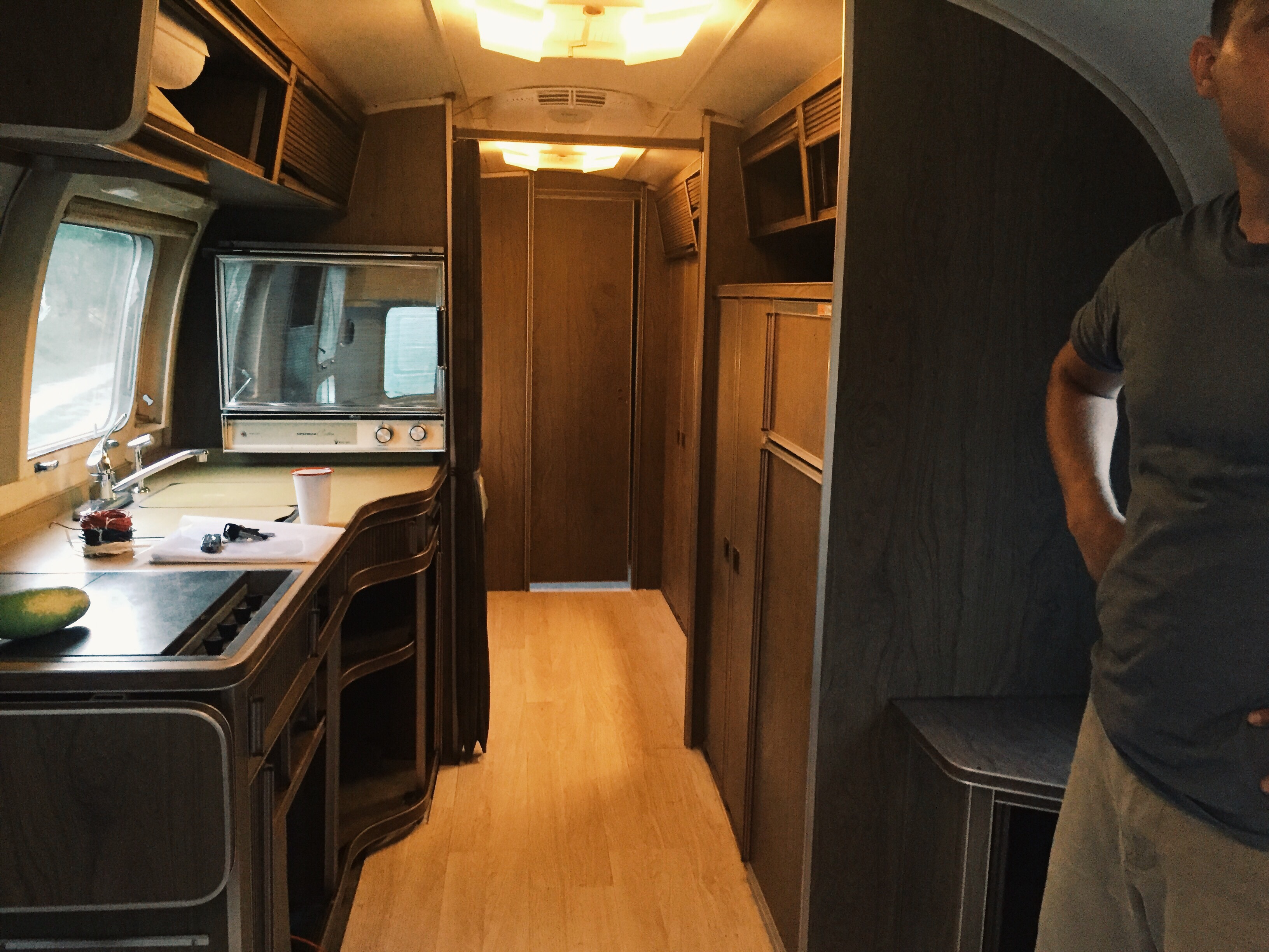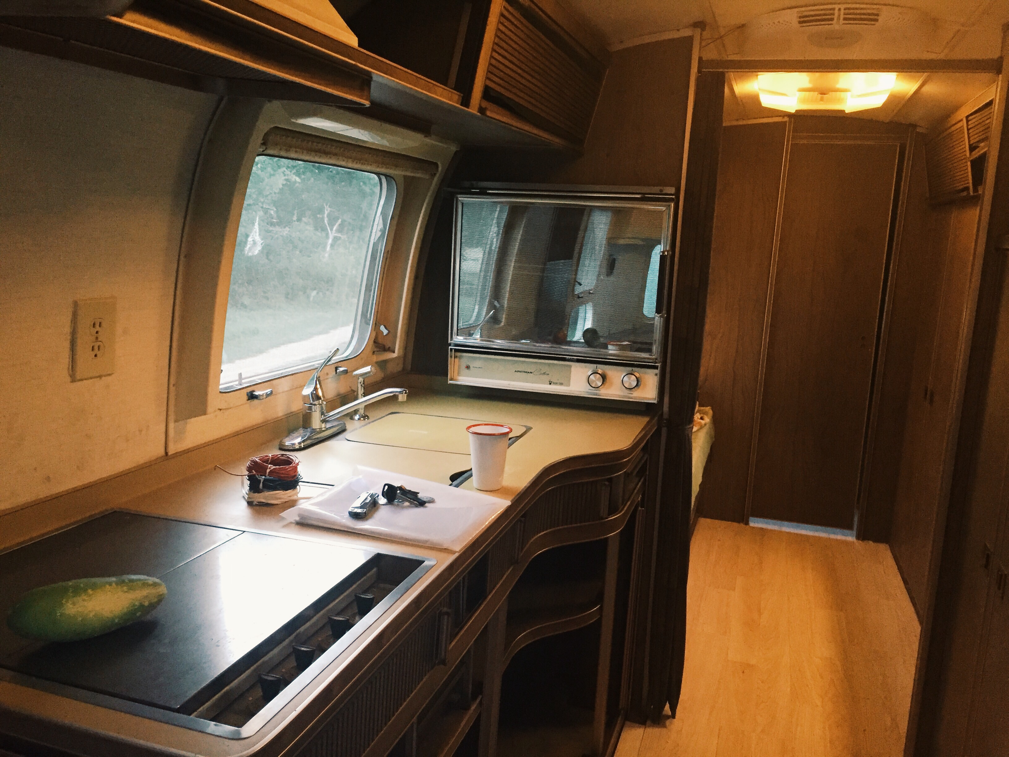 The galley with a random cucumber from the garden
